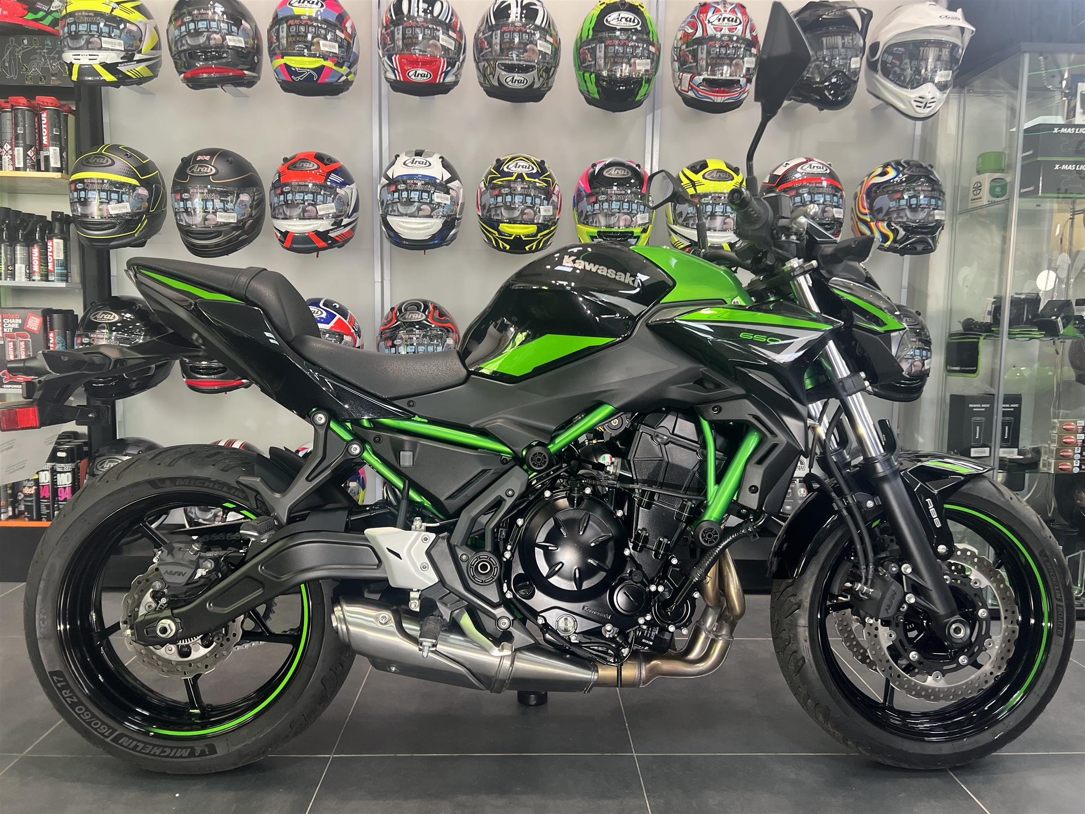 2022 KAWASAKI Z650 IN GREEN. WITH ONLY 1831 MILES FROM NEW THIS Z650 IS THE IDEAL FIRST BIKE FOR ANY RIDER. FEATURES INCLUDE ABS BRAKES, ASSIST AND SLIPPER CLUTCH AND LED LIGHTING. THIS BIKE HAS ALMOST NEW MICHELEN ROAD 6 TYRES ON IT AND HAS A FULL SERVICE HISTORY. FOR ONLY £5997