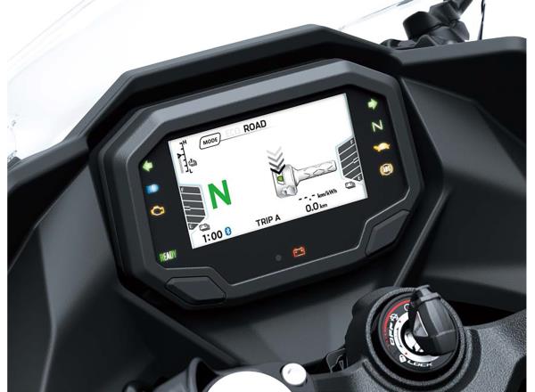 4.3” all-digital TFT colour instrumentation gives the cockpit a high-tech, high-grade appearance, while being able to connect to your ride wirelessly offers an enhanced motorcycling experience.