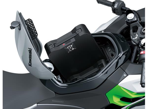 The Ninja e-1 and Z e-1 feature dual removable lithium-ion batteries. Multiple charging options add flexibility for minimal added inconvenience to your daily routine. Dual lithium-ion batteries weigh 11.5 kg each. Offboard charging* can be done by connecting the bike to a dedicated charger powered by a household outlet. Alternatively, the batteries can be removed and charged. Charging time per battery is approximately 3.7 hours for a full charge, 1.6 hours for a partial (20% >> 85%) charge. *Offboard charging refers to charging systems not native to the vehicle itself. Since the battery charger (which takes AC power and converts it to the DC power needed to charge the batteries) is located outside the bike, this is an example of offboard charging.
