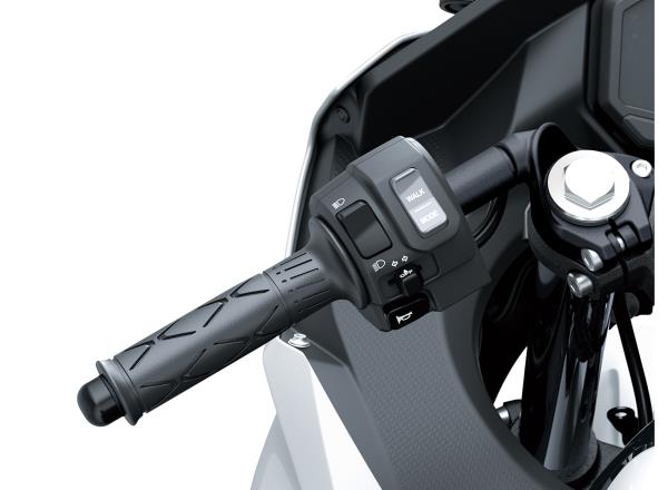 Kawasaki’s first roadgoing EVs are powered by a compact brushless electric motor offering strong off-the-line acceleration and low-end response. Rider-selectable power levels contribute to rider confidence, while unique EV features like e-boost and WALK Mode add to the fun experience. The rider-friendly electric motor is also clean and quiet.
