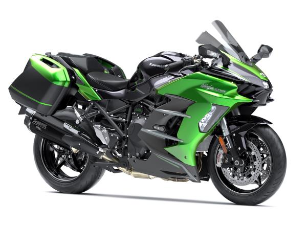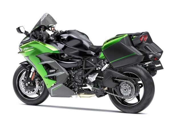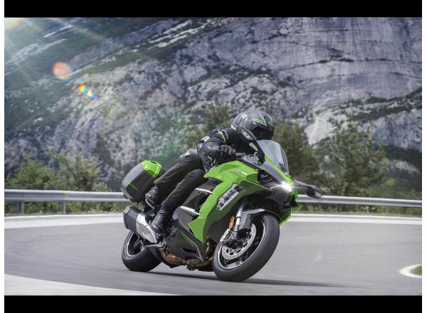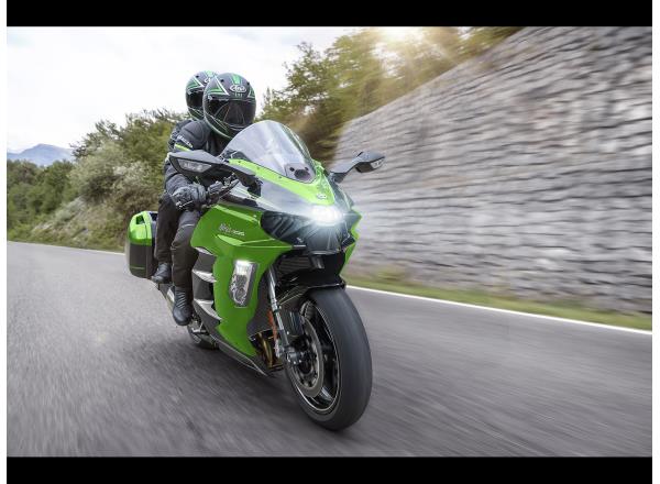 With its large windshield and full-fairing bodywork, the Ninja H2 SX provides substantial wind protection, contributing to rider comfort on long rides. In addition to contributing to sporty styling, the aerodynamically shaped bodywork is also a benefit when riding at highway speeds.