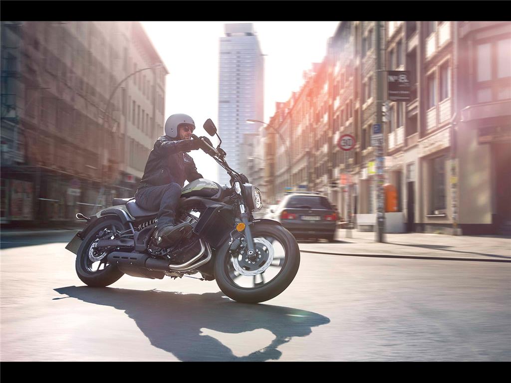 Liquid-cooled, DOHC, 8-valve 649 cm3 Parallel Twin with fuel injection delivers smooth, responsive performance, especially in the low and medium rpm ranges. The engine was tuned for rider-friendly power characteristics that will inspire confidence in new riders. The Vulcan S offers smooth starts from a standstill, smooth acceleration, and a satisfying pull when accelerating. The strong acceleration facilitates highway merging and passing.