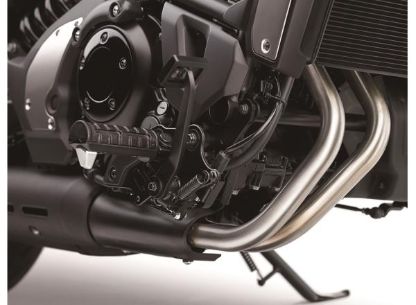 The compact engine and slim frame result in a design that is narrow at the knees and feet. Forward positioned footpegs are ideal for relaxed, cruiser style riding.