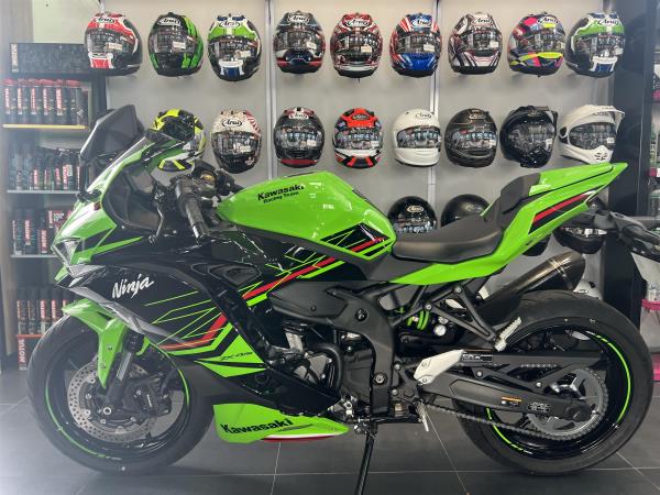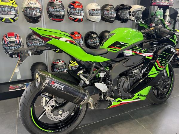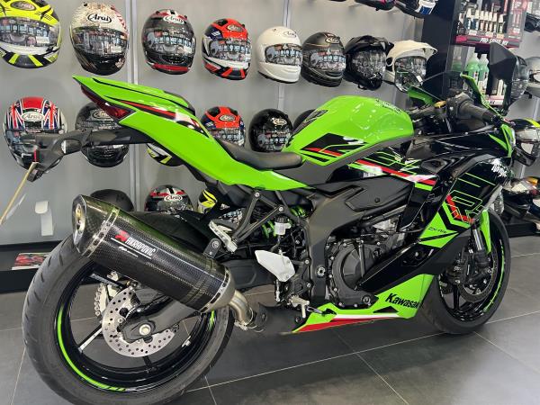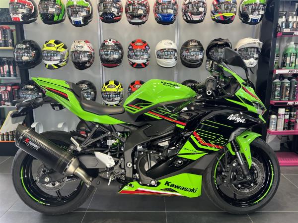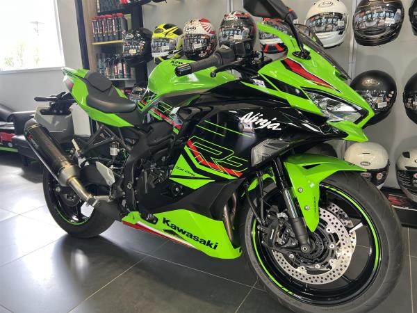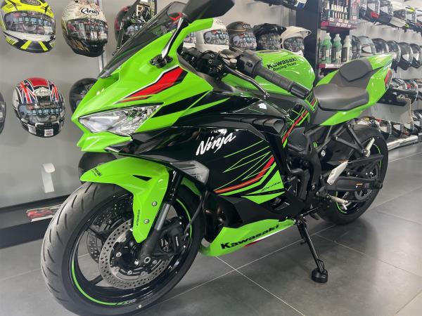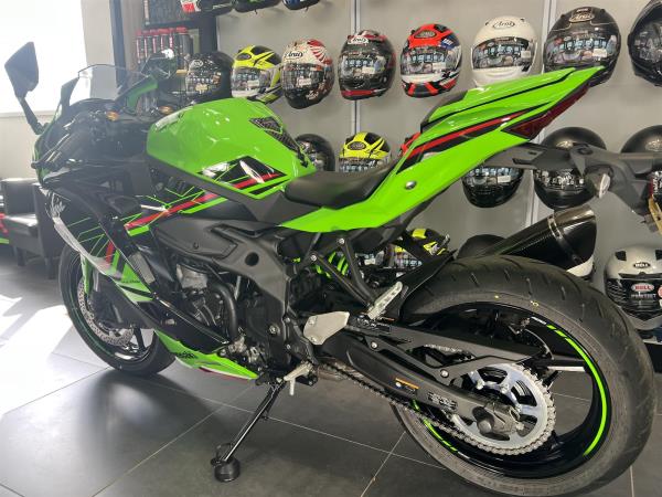 2024 KAWASAKI NINJA ZX4RR IN KAWASAKI LIME GREEN PERFORMANCE EDITION. FEATURES INCLUDE KTRC (KAWASAKI TRACTION CONTROL), FULL COLOUR TFT INSTRUMENTATION, CLASS LEADING PERFORMANCE FROM ENGINE, SHARPER NINJA STYLING. LED HEADLIGHTS, ASSIST AND SLIPPER CLUTCH. QUICKSHIFTER, RAM AIR INTAKE, HIGH GRADE SUSPENSION, ALL NEW INLINE 4 ENGINE, WORLD SUPERBIKE INSPIRED CHASSIS, WITH A REDLINE WELL BEYOND 15000 RPMS INDICATING ITS SCREAMING POTENTIAL THIS ENGINE FEATURES RACE INSPIRED TECHNOLOGY ALSO FOUND ON THE ZX10R. WITH ONLY 4152 MILES FULLY SERVICED BY US FOR £8397 FROM COLERAINE KAWASAKI, 6 TIMES WINNER OF KAWASAKI DEALER OF THE YEAR.