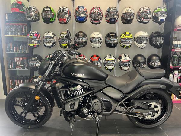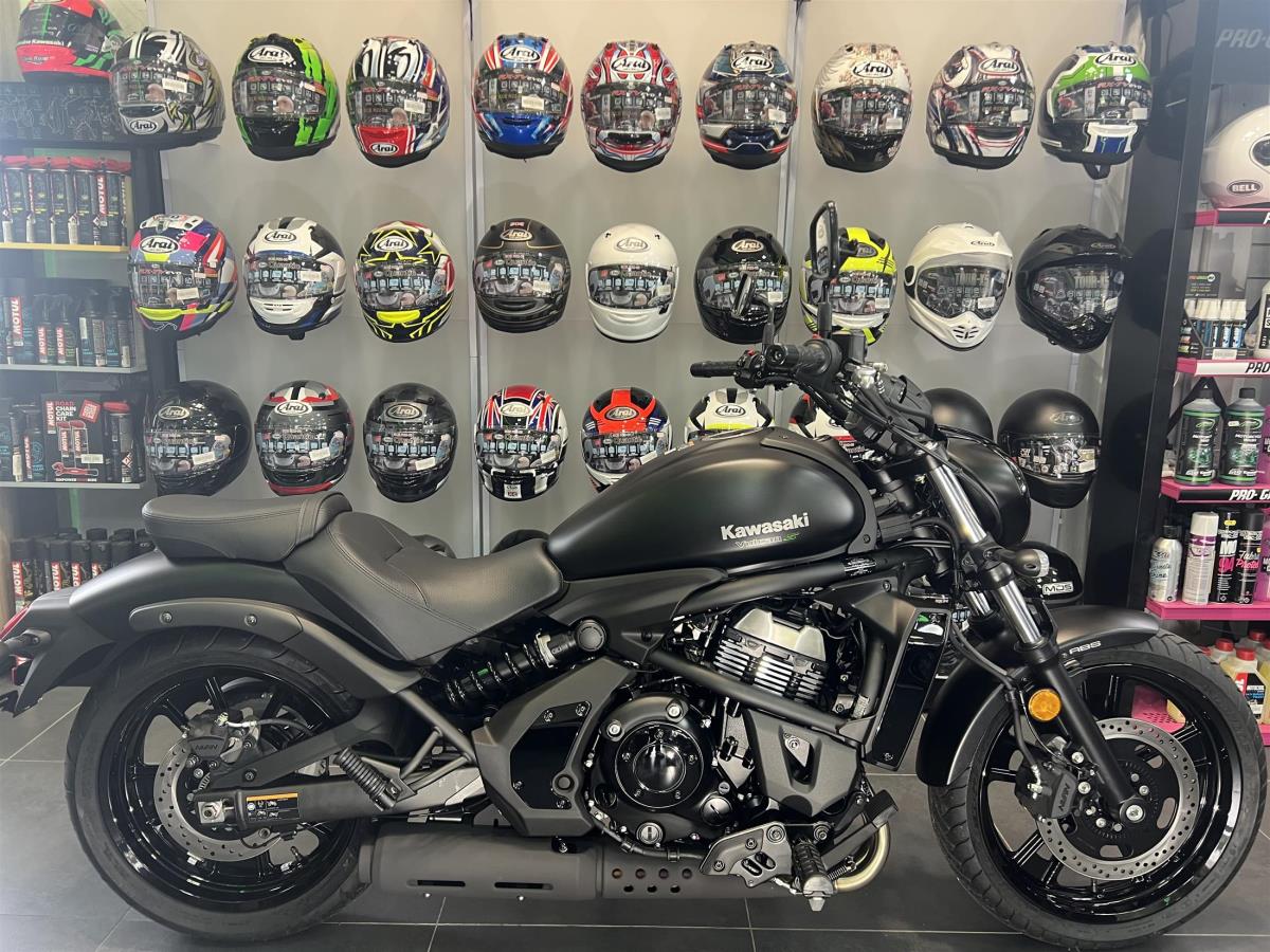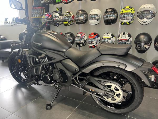 2025 KAWASAKI VULCAN S IN METALLIC FLAT SPARK BLACK. 0% FINANCE AVAILABLE TERMS AND CONDITIONS APPLY SUBJECT TO STATUS. FEATURES INCLUDE ABS, ERGO FIT, HORIZONTAL REAR SHOCK ADDING TO LOW CENTER OF GRAVITY, LIGHT EASY HANDLING, EASY TO RIDE. BRAND NEW WITH A 4 YEAR WARRANTY ON THE ROAD WITH ONE YEARS ROAD TAX FOR JUST £7275. FROM SIX TIME WINNER OF KAWASAKI DEALER OF THE YEAR. COLERAINE KAWASAKI. THIS BIKE IS IN THE SHOWROOM READY FOR IMMEDIATE DELIVERY.