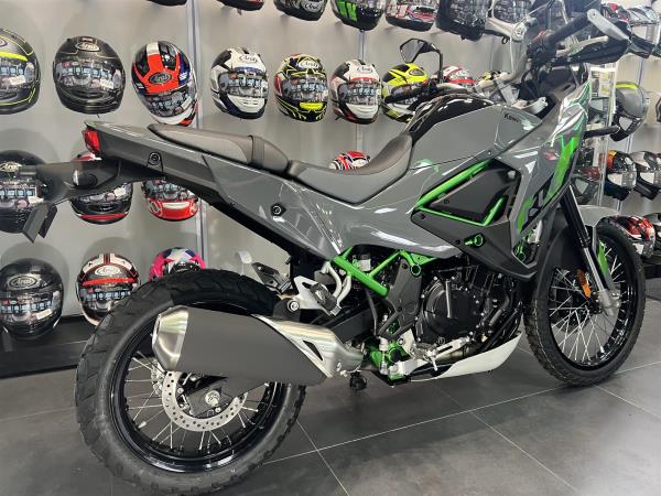2026 KAWASAKI KLE 500 SE IN PEARL STORM GREY. LIFES A RALLY, RIDE IT. IN STOCK NOW WE HAVE THE COMPLETE KLE 500 RANGE. ITS PURPOSEFUL RALLY STYLE DESIGN IS A PRIME EXAMPLE OF FUNCTIONAL BEAUTY THAT NOT ONLY LOOKS THE PART BUT DELIVERS VERSATILE PERFORMANCE BOTH ON AND OFF PAVEMENT. WITH A RESPONSIVE AND TORQUEY FUEL INJECTED PARALLEL TWIN ENGINE COMBINED WITH A WELL BALANCED CHASSIS. WETHER YOU’RE A COMMUTER LOOKING FOR AN ADVENTURE MOTORCYCLE WITH CIVILIZED ROAD MANNERS THE NEW KLE IS YOUR PASSPORT TO A WORLD OF POSSIBILITIES. FEATURES INCLUDE SELECTABLE ABS, MULTIPLE SEAT OPTIONS CATERING TO ALL RIDERS, MULTI PURPOSE TRELLIS FRAME, TFT INSTRUMENTATION, PREMIUM SUSPENSION, TOUGH OFF ROAD WHEELS. IN STORE NOW FOR JUST £6744. INCLUDING A 4 YEAR WARRANTY AND YOUR FIRST YEARS ROAD TAX. FROM 6 TIME WINNER OF KAWASAKI DEALER OF THE YEAR. COLERAINE KAWASAKI