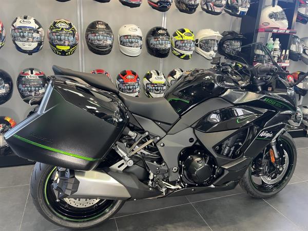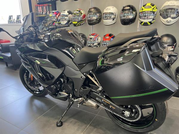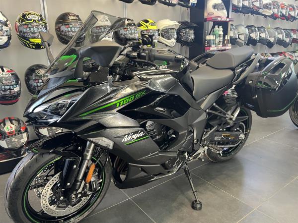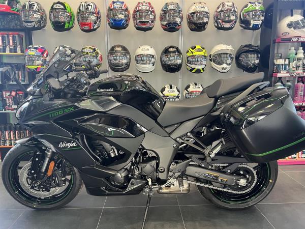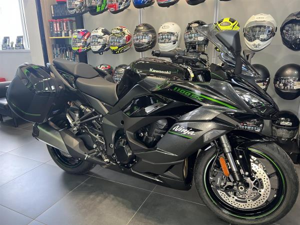 2025 KAWASAKI NINJA 1100SX IN METALLIC CARBON GREY. KAWASAKI HAVE DONE IT AGAIN FURTHER IMPROVING THE CLASS LEADING SPORTS TOURING MACHINE. SAVE A TOTAL OF £1600 ON THIS PRE REGISTERED MODEL WITH A FREE TOURING KIT. RETAIL PRICE IS £13625 FOR JUST £12025 INCLUDING A 4 YEAR WARRANTY. FEATURES INCLUDE KIBS KAWASAKI INTELLIGENT BRAKE SYSTEM, ABS ANTI LOCK BRAKE SYSTEM, KCMF CORNERING MANAGEMENT FUNCTION, IMU INERTIA MEASUREMENT UNIT, ASSIST AND SLIPPER CLUTCH, KTRC KAWASAKI TRACTION CONTROL. RIDER MODES, DUAL THROTTLE VALVES, ECO RIDING LIGHT, GEAR INDICATOR, LED LIGHTS, INCREASED SEAT COMFORT, IMPROVED KQS KAWASAKI QUICK SHIFTER. TFT COLOUR INSTRUMENTS, ELECTRONIC CRUISE CONTROL, IMPROVED IMU ELECTRONICS, LOWER VIBERATIONS TO THE PREVIOUS MODEL FURTHER UPDATES INCLUDE THE NEW 1099CC ENGINE INCREASING LOW AND MID RANGE POWER COUPLED WITH A LONGER 5TH AND 6TH GEAR FURTHER ADDING TO TOURING COMFORT. THIS BIKE INCLUDES THE FREE TOURING KIT CONSISTING OF PANNIERS, TOURING SCREEN AND HEATED GRIPS. PERFORMANCE AND TOURING KITS AVAILABLE ASK FOR MORE INFORMATION. FROM SIX TIME WINNER OF DEALER OF THE YEAR. COLERAINE KAWASAKI.