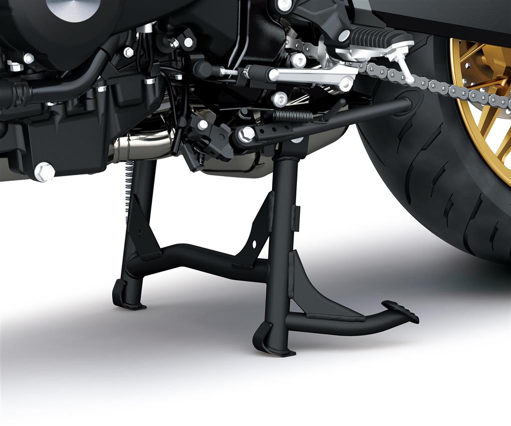 A centre stand facilitates maintenance chores and offers increased stability for parking when fully loaded with luggage.