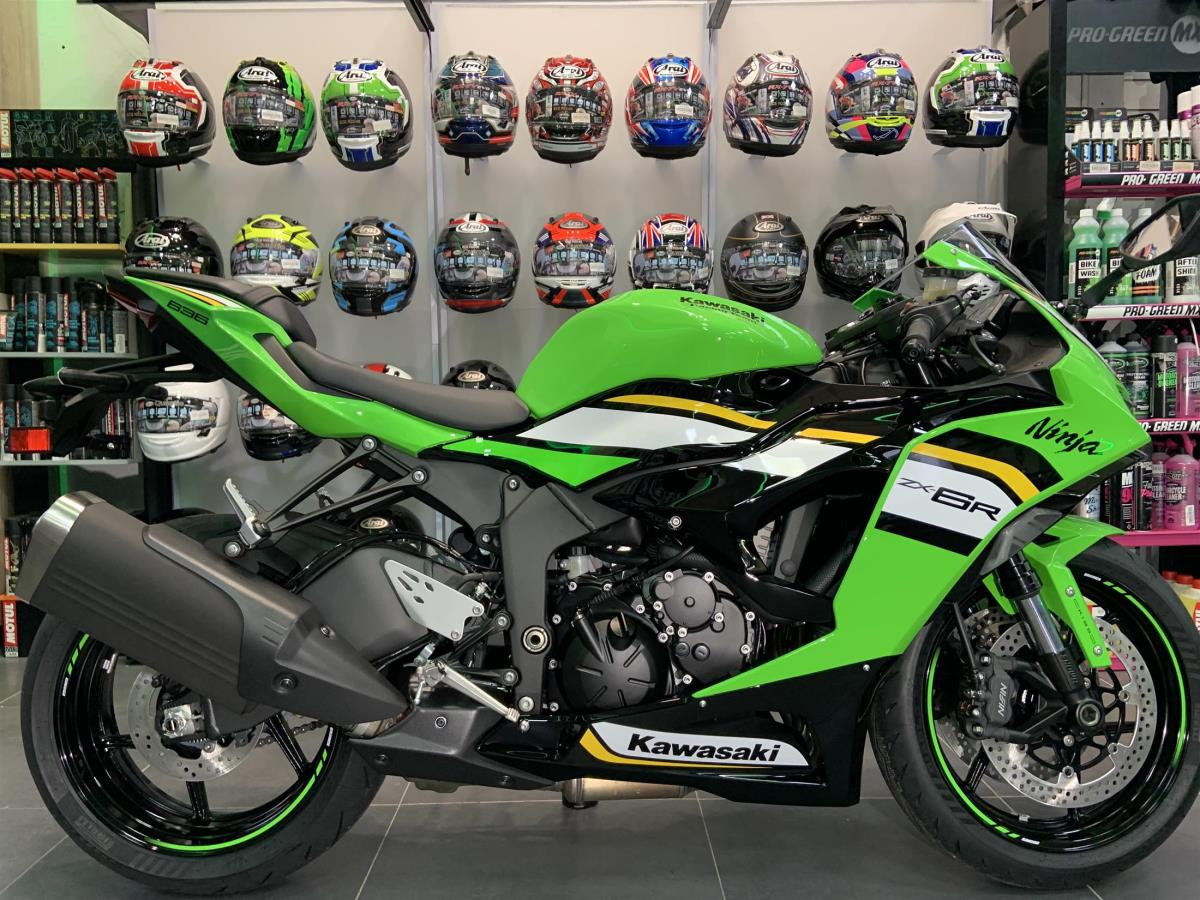 UNREGISTERED KAWASAKI ZX6R. FEATURES INCLUDE POWER MODES, TRACTION CONTROL, QUICKSHIFTER UP, ABS, ASSIST AND SLIPPER CLUTCH, KAWASAKI INTELLIGENT BRAKE SYSTEM. WITH RACE BASED ENGINE AND CHASSIS PERFORMANCE OPTIMISED FOR THE STREET, COMPACT NEW HEADLIGHTS ARE A KEY ELEMENT OF THE NINJA ZX6RS NEW FACE. WAS £10779 NOW £10197 SAVE £582. ASK OUR SALES TEAM ABOUT THE PERFORMANCE EDITION. NOW IN STOCK. AT SIX TIME WINNER OF KAWASAKI DEALER OF THE YEAR. COLERAINE KAWASAKI